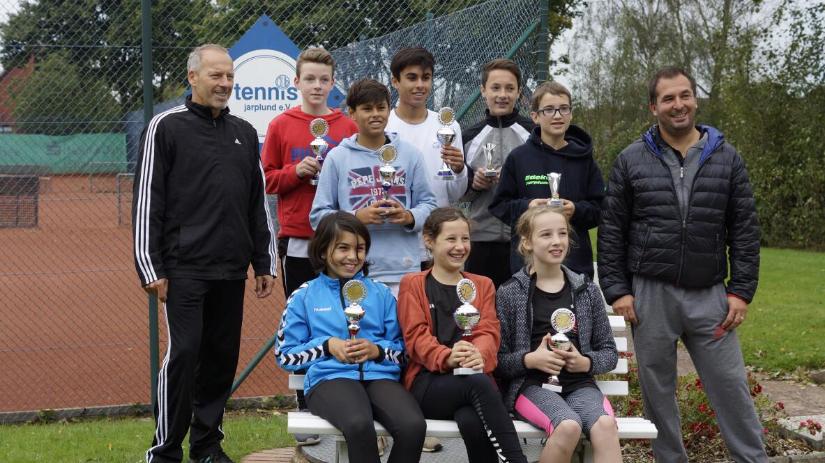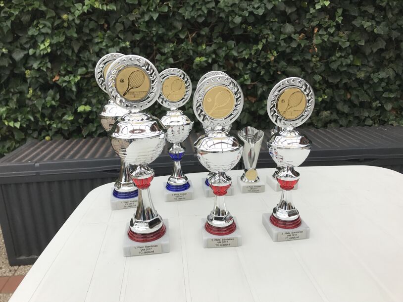Am 16.09.2017 fand unsere diesjährige Jugend-Vereinsmeisterschaft statt. Petrus meinte es an diesem Tag endlich gut mit uns. Zwar starteten die Kids bei kühlen 10 Grad ins Turnier, allerdings blieb es diesmal trocken.Es traten bei den Mädchen die Bambinos und bei den Jungs die Knaben/Junioren gegeneinander an. Gespielt wurden S�tze bis 4 und ggf. Match-Tiebreak. Wir konnten tolle und spannende Spiele verfolgen. Die Eltern der Kids sorgen durch Spenden für eine super Verpflegung.